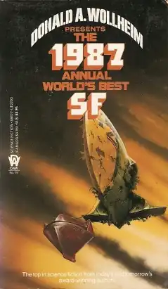 The 1987 Annual World's Best SF is an anthology of science fiction short stories edited by Donald A. Wollheim and Arthur W. Saha, the fourteenth volume in a series of nineteen. It was first published in paperback by DAW Books in June 1987, followed by a hardcover edition issued in July of the same year by the same publisher as a selection of the Science Fiction Book Club. For the hardcover edition the original cover art by Tony Roberts was replaced by a new cover painting by Richard Powers.
