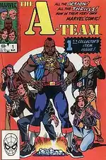 In 1984, Marvel Comics released an A-Team title, which ran for 3 issues.[1] The three issues were published within the same month so that they could be bundled together and sold in chain stores.[2] Jim Salicrup, who edited all three issues and wrote two of them, said that due to the tight deadline and the unavailability of A-Team episodes on home media, he watched a single episode of the series on TV and delivered both his plots to production studio Universal for their approval the next day.[2] The Marvel Comics series was sold individually and released in "packs": one pack contained the first 2 issues, the other all 3 issues. Each pack was in a sealed transparent bag featuring Marvel's logo and a picture of Spider-Man. Marvel released the series in a trade paperback called The A-Team Storybook. (ISBN 0517553856).