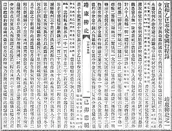 In 1892, Xie Jiafu (謝家福) gave a manuscript of The Accounts of Jingkang to Ding Bing (丁丙), who believed that the said editor "Nai An" might have been Shi Nai'an (author of the early Chinese novel Water Margin), and it later became the collection of the Nanjing Library and collated by Ding Bingheng (丁秉衡) as of 1910.[8][9] The most common modern edition of the book was published in 1939, yet it lacks proofreading and was later revised by the Zhonghua Book Company in 1988.[3][5][10][11] As it is believed that the content of The Accounts of Jingkang were first-person narrative by people of both Song and Jin dynasty, researchers generally consider the book veritable after its discovery.[12][13]