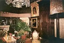 The Age of Innocence was filmed on location primarily in Troy, New York.[7][8][9] The opera scenes were filmed at the Philadelphia Academy of Music in Philadelphia, Pennsylvania. The scenes set in the home of Mrs. Mingott were filmed in "The Castle", a fraternity house belonging to the Alpha Tau chapter of Pi Kappa Phi at Rensselaer Polytechnic Institute. Formerly known as the Paine Mansion, after its completion in 1896 (then-estimated to cost $500,000), it was heralded as the grandest house in all of Troy.[10][11] The scenes depicting the country house in snow were filmed inside the circa 1737 Dutch-colonial Luykas Van Alen House, in Kinderhook, New York.[7] Only one major set was built, for an ornate ballroom sequence at the Beaufort residence.[12] The triangular Victorian Gothic Rice Building was used as the setting for the law office.[13]