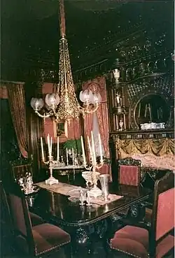 A room in the Paine Mansion—which is now a fraternity house belonging to the Alpha Tau chapter of Pi Kappa Phi at Rensselaer Polytechnic Institute—staged as the dining room for the film.