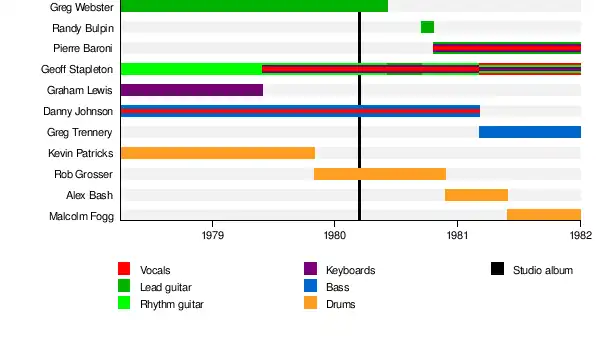 • Geoffrey Stapleton – rhythm guitar, backing and lead vocals, keyboards (April 1978-80); guitars, backing and lead vocals, keyboards (1980); lead vocals, rhythm guitar, keyboards (1980-1)