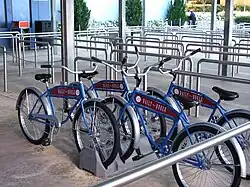Daily Bugle bikes in the extended outdoor queue area at Islands of Adventure