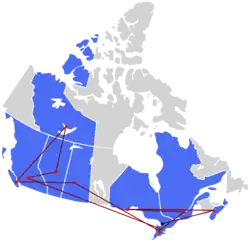 The Amazing Race Canada 7 is the seventh season of The Amazing Race Canada, a Canadian reality competition show based on the American series The Amazing Race. Hosted by Jon Montgomery, it featured nine teams of two, each with a pre-existing relationship, and one returning team of two given a second chance to compete by fans in a race across Canada. The grand prize included a CA$250,000 cash payout, a trip for two around the world, and two 2019 Chevrolet Blazer SUVs.[1] This season visited six provinces and one territory and travelled over 17,000 kilometres (11,000 mi) during eleven legs. Starting in Toronto, racers travelled through Ontario, British Columbia, Alberta, the Northwest Territories, Saskatchewan, Quebec, and Nova Scotia before finishing in Muskoka. New twists introduced in this season include the One Way, which allowed teams to force others to complete one specific side of the Detour, and the Blind Detour, where teams learned about the task that they chose after arriving at its location. The season premiered on CTV on July 2, 2019,[3] with the season finale airing on September 10, 2019.