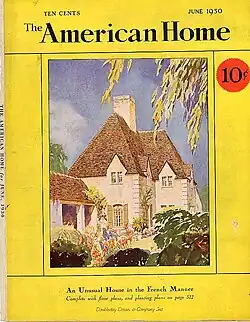 The American Home was a continuation of the magazine Garden & Home Builder.[1] It was published by Nelson Doubleday of Doubleday, Doran & Company.[2] Ellen Diffin Wangner edited the first issues, October 1928 to March 1929.[1] The American Home lost money its first four years, and occasionally entire issues were omitted.[3] William Herbert Eaton, its circulation manager, became publisher in 1932. He bought the magazine in 1935,[3] forming American Home Publishing Company, which continued to publish it in New York City until he sold the magazine in 1958 to Curtis Publishing Company, its single-copy distributor.[4] Under Eaton, the magazine was refocused toward the upper middle class reader, leaving the higher end of the home market to fellow Doubleday magazine Country Life, which Eaton also bought.