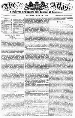The Atlas was a weekly newspaper published in England from 1826 to 1869.