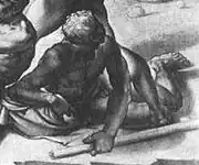 Comparison with the soldier in the copy of Battle of Cascina by Michelangelo