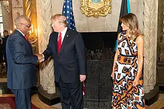 U.S. President Donald Trump and First Lady Melania Trump meet with Bahamian Prime Minister Hubert Minnis in Palm Beach, Florida, in March 2019