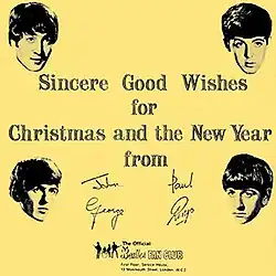 The first Christmas recording[3] from the Beatles featured several renditions of the traditional carol "Good King Wenceslas" and individual messages from the four, ending with a closing chorus of "Rudolph the Red-Nosed Ringo".[4][5] This offering, as well as 1964's, was scripted by Beatles' press officer Tony Barrow, who had instigated the Christmas message programme.[6][7]