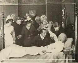 The love affair grows exciting. On one occasion the minister from the slums while visiting the young woman at her home feels he has won her and in a sudden fit of passion, takes her in his arms, smothering her with kisses. She is greatly enraged and calls in the other minister, who happens to be in the next room. She tells him of the actions of the other and he strikes a deadly blow at him, saying at the same time the girl is to be his wife, which she also admits. The strike at the plant of the General goes from bad to worse. It is at last decided to call out the militia to aid the strike breakers in running the cars. The Bishop of the Diocese (in which the two churches are located) dies. The young ministers find that they are rival candidates for the vacancy. The "wealthy" minister is backed by millions, while his less fortunate brother finds his friends are not very influential. The convention is held to elect the new bishop, and the honor of nominating Barmore is given to General Wharton. A parishioner of Stebbing makes his appearance at the convention and nominated the man who had done so much for the poor. Stebbing tells the assembly he will withdraw his nomination if General Wharton gives in to the demands of his employees.