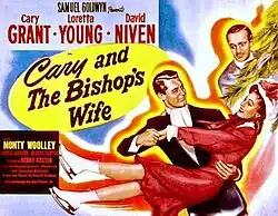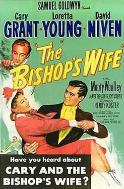 The Bishop's Wife (also known as Cary and the Bishop's Wife)[5] is a 1947 American Christmas romantic fantasy comedy film directed by Henry Koster, starring Cary Grant, Loretta Young and David Niven. The plot is about an angel who helps a bishop with his problems. The film was adapted by Leonardo Bercovici and Robert E. Sherwood from the 1928 novel of the same name by Robert Nathan.
