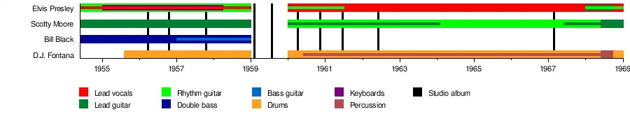 • D. J. Fontana – drums, percussion, backing vocals (1955–1968; died June 13, 2018)