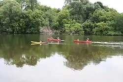 Boaters canoe along the Speed River, located directly beside the Boathouse.