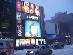 The Brass Rail is a strip club in Toronto, Canada. It is located on Yonge Street just south of Bloor. It is well known as a popular venue for celebrities, especially during the Toronto International Film Festival, which is based at the nearby luxury hotels of Yorkville.[1] Stars that have been observed there include Samuel L. Jackson,[2] Charlize Theron,[3] Alex Rodriguez,[4] and Colin Farrell.[5] The Brass Rail was one of the first venues Paul Shaffer worked in, serving as host and musician.[6]
