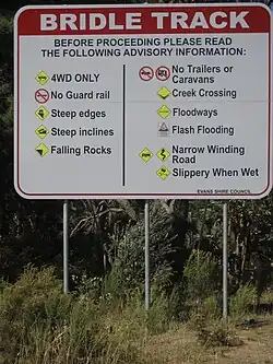 A warning sign in Hill End at the northern end of the Bridle Track, pictured in 2008
