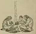 The boys family sitting around their fire with the baby and parents. (cover not available)