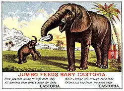 Centaur was an early practitioner of the use of celebrities in mass advertising. Centaur Liniment advertising included a purported endorsement from P.T. Barnum.[7] One famous ad had the company represented by Barnum's famous circus star Jumbo, the giant elephant. Another ad featured the legendary boxer Joe Louis.[8]