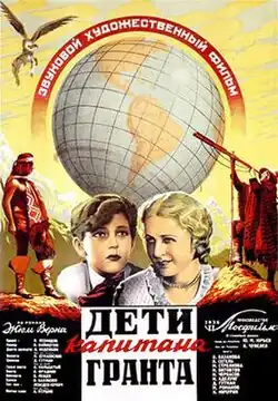 The Children of Captain Grant (Russian: Дети капитана Гранта, romanizedDeti kapitana Granta) is a 1936 Soviet adventure film directed by Vladimir Vaynshtok and David Gutman and starring Nikolai Cherkasov, Ivan Chuvelyov and Yuri Yuryev. It is an adaptation of the 1868 novel In Search of the Castaways by Jules Verne. The film was popular on its release, and was followed in 1941 by another Verne adaptation Mysterious Island.[1] In the 1860s, two Scottish children go on a global search for their missing father, the sailor Captain Grant.