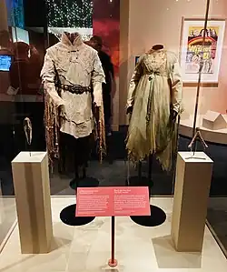 The Gelflings were designed and sculpted by Wendy Midener. They were difficult to perform, as they were meant to be the most human creatures in the film, and thus their movements, particularly their gait, had to be as realistic as possible. During scenes when the Gelflings' legs were off-camera, the performers walked on their knees in order to make the character's movements more lifelike.[21] According to Odell, the character Jen was Henson's way of projecting himself into the film.[20] Jen was originally meant to be blue, in homage to the Hindu deity Rama, but this idea was scrapped early on.[11]