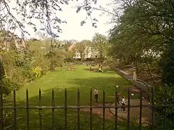 However, since the formation in 1997, of Friends of the Dell, and in 2006, the Gardening Around Leamington Spa (GALS) group, who have helped the Warwick District Council maintain the park,[1] its good name has returned. Friends of the Dell hold regular parties in the park, the most popular being the ones in early summer and Halloween. In the early 2000s the somewhat ageing children's play equipment was upgraded thanks to a council grant. In May 2007, GALS received a £500 donation from Barclays to help weed the steep slopes of the park.[2] In late 2007, the east slope of the park was reinforced with rock filled gabions placed at its foot. In March 2011, there was more great news for The Friends of The Dell when they learnt that the nationwide "Big Lottery Fund" had granted them £50,000.[3][4] Plans to spend the money include a hard path across the park to allow better access for the disabled as well as improved play equipment, new railings and an information board at the entrance.[5]