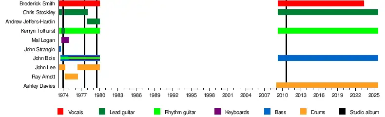 • John Bois – bass, rhythm guitar, keyboards, backing and occasional lead vocals (1973–1979, 2009–present)