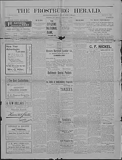 1. ^ "About The Frostburg herald". Chronicling America: Historic American Newspapers. Library of Congress. Retrieved 27 February 2019.