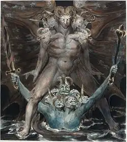 The Great Red Dragon paintings are a series of watercolour paintings by the English poet and painter William Blake, created between 1805 and 1810.[1] It was during this period that Blake was commissioned to create over one hundred paintings intended to illustrate books of the Bible. These paintings depict "The Great Red Dragon" in various scenes from the Book of Revelation.
