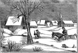 Many livestock lost their lives, either starving or freezing to death under tremendous drifts of snow. As many as 90–95% of the deer in the area died, either from starvation or predators, leading to many towns appointing "deer-reeves" to ensure their preservation.[9] Many orchards were damaged, since the snow covered even the tops of many trees, and animals would graze among the upper branches where they usually could not.[6][10]