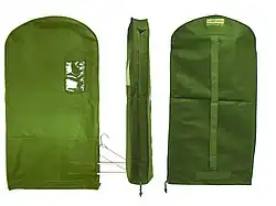The Green Garmento is a reusable packaging product introduced by Jennie Nigrosh as an alternative to single-use dry cleaning plastic bags. It is a multipurpose, reusable garment bag which also serves as a hanging hamper, duffel bag, and dry cleaning/pick-up bag. The Green Garmento also offers additional sustainable products for laundry, storage, travel, and organization.