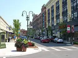 The development for Phase I also included: a comedy club (The Funny Bone), a fitness club (Urban Active), as well as an upscale movie theater (Rave Cinemas). Phase I also includes 100,000 square feet (9,300 m2) of second-floor office space overlooking the town square and approximately 136 residential loft apartments. The mixed-use residential buildings were designed by Torti Gallas and Partners.
