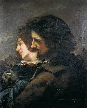 This was the prototype for a second version produced around the same time, under the title The Lovers in the Countryside – Sentiments of youth, which was given to the Petit Palais in Paris in 1909 by Juliette Courbet.[1] Both are oil paintings on canvas and show the artist and a woman in profile.