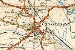 A 1921 Ordnance Survey map showing The Heath and Uttoxeter