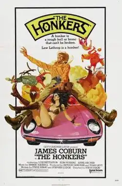 The Honkers is a 1972 American comedy western film directed by Steve Ihnat and written by Steve Ihnat and Stephen Lodge. The film stars James Coburn, Lois Nettleton, Slim Pickens, Anne Archer, Richard Anderson and Joan Huntington. The film was shot in Carlsbad, New Mexico and released on May 17, 1972, by United Artists.[2][3] The film was the film debut for Anne Archer.[4]