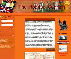 A screenshot of the since deleted Hooded Gunman website, taken from the official Facebook page