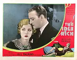 The Idle Rich is a 1929 American Pre-Code early sound comedy film produced and released by Metro Goldwyn Mayer and directed by William C. deMille.[2] It is based on the Broadway play White Collars by Edith Ellis, which had played at the Egan Theater in Los Angeles in 1924 before moving to the Cort Theatre in New York.[1][2] The film is extant, and was released on DVD in 2012 from WarnerArchive Collection.