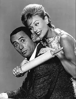 The series was conceived as a vehicle for entertainer Joey Bishop by Danny Thomas and Louis F. Edelman in 1960. At the time, Thomas was starring in his own series, Make Room for Daddy (later known as The Danny Thomas Show), airing on CBS. Thomas' series was then a top-20 hit and served as a launching pad for The Joey Bishop Show.[1] The series' pilot episode, titled "Everything Happens to Me", aired on March 27, 1961, during the eighth season of Danny Thomas.[2] In the pilot, an incompetent Hollywood "public relations man" named Joey Mason (Bishop) forgets to make proper accommodations for an exhausted Danny Williams (Thomas) after he arrives in Los Angeles to play a show. Joey is then forced to put Danny up in the home he shares with his colorful parents, Mr. and Mrs. Mason (played by Billy Gilbert and Madge Blake) and two unmarried sisters, Betty (Virginia Vincent) and aspiring actress Stella (Marlo Thomas).[3][4]