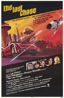 The Last Chase is a 1981 Canadian-American dystopian science fiction film directed by Martyn Burke who was also the producer on the film, produced for Argosy Films. The film stars Lee Majors, Chris Makepeace and Burgess Meredith in a futuristic scenario about a former racing driver who reassembles his old Porsche car and drives to California in a world where cars and motor vehicles of all kinds have been outlawed by the authorities.[2]