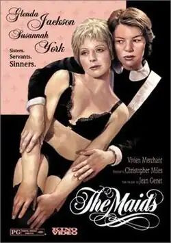 The Maids (French: Les Bonnes) is a 1975 British film that was directed by Christopher Miles. It is based on the play of the same title by the French dramatist Jean Genet. The film stars Glenda Jackson as Solange, Susannah York as Claire, Vivien Merchant as Madame, and Mark Burns as Monsieur. The film was produced by Ely Landau for the American Film Theatre, which presented thirteen film adaptations of plays in the United States from 1973 to 1975.[1]