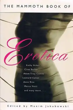 The Mammoth Book of Erotica (ISBN 0786707879) is an erotic literature anthology edited by Maxim Jakubowski that was originally published in 1994, with a revised edition published in 2000. It was published by Robinson Publishing in the United Kingdom (2000 reprint by Robinson imprint of Constable & Robinson),[1] and by Carroll & Graf (Avalon Publishing Group imprint) in the United States.