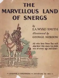 The Marvellous Land of Snergs is a children's fantasy, written by Edward Wyke-Smith and illustrated by the Punch cartoonist George Morrow. It was originally published in Britain by Ernest Benn in September 1927,[1] and later published in the U.S. in 1928 by Harper & Brothers.[2] It is notable as an inspiration source for J. R. R. Tolkien's The Hobbit.
