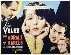 The Morals of Marcus is a 1935 British comedy film directed by Miles Mander and starring Lupe Vélez, Ian Hunter and Adrianne Allen.[1] The screenplay concerns an archaeologist who finds a woman hiding in his luggage who has escaped from a harem and they eventually fall in love and marry. The Morals of Marcus was previously filmed twice as silents in 1915 (The Morals of Marcus, with Marie Doro) and in 1921 (Morals, with May McAvoy).