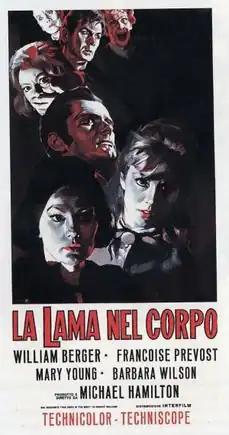 The Murder Clinic (Italian: La lama nel corpo, lit. 'The Knife in the Body') is a 1966 slasher giallo film directed by Lionello De Felice and Elio Scardamaglia. It was produced by Elio Scardamaglia, Francesco Scardamaglia and Luciano Martino.[1] The screenplay was written by Martino and Ernesto Gastaldi from their own story.[1] It stars William Berger, Françoise Prévost, Harriet White Medin, Mary Young, and Barbara Wilson.