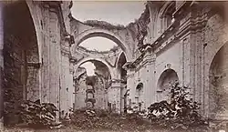 San Francisco church ruins in 1875; the Green Goddess temple scenes were filmed at this location in 1935. Photograph by Eadweard Muybridge.