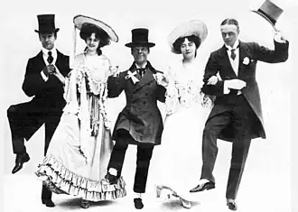 Connie Ediss (left) with Edmund Payne, George Grossmith, Jr. and Gertie Millar