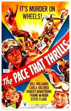 The Pace That Thrills is a 1952 American action film directed by Leon Barsha and written by Robert Lee Johnson and DeVallon Scott. The film stars Bill Williams, Carla Balenda, Robert Armstrong, Frank McHugh and Michael St. Angel. The film was released on March 21, 1952, by RKO Pictures.[1][2][3]