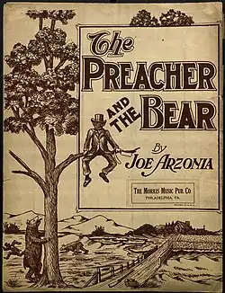 "The Preacher and the Bear" is an American popular song, originally a "coon song". The lyrics recount the story of a church pastor who appeals to God after being treed by a grizzly bear while out hunting on the Sabbath.[1] He falls out of the tree and has to fight the bear.[2] Various versions have been recorded.[3]