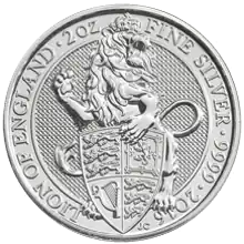 20. ^ "Buy The Queen's Beasts 2016 – The Lion – 2 oz Silver Bullion Coin". www.royalmintbullion.com. Retrieved 14 August 2016.