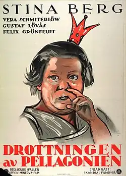 The Queen of Pellagonia (Swedish: Drottningen av Pellagonien) is a 1927 Swedish silent comedy film directed by Sigurd Wallén and starring Vera Schmiterlöw, Stina Berg, Carl Gustaf Ekman and Gustaf Lövås.[1][2] It was shot at the Råsunda Studios in Stockholm. The film's sets were designed by the art director Vilhelm Bryde. The movie was banned in Sweden between 1938 and 1949.