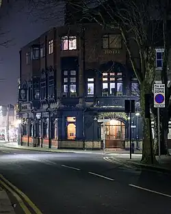 The Railway Hotel is a pub in Southend-on-Sea, Essex, England.[1] It is known for its live music and its vegan food. The pub launched a meat-free menu in 2012,[2] later making a solely vegan menu. English guitarist Wilko Johnson, David Bowie & Iggy Pop collaborator Geoff MacCormack and Teenage Fanclub drummer Brendan O'Hare have been known to attend the pub regularly. In 2013 the pub replaced their traditional pub sign with a hand-painted portrait of Wilko Johnson by local artist Jack Melville.[3][4]