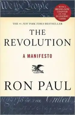 The Revolution: A Manifesto is a New York Times #1 best seller by Republican former U.S. Congressman Ron Paul. The work was published on April 30, 2008, by Grand Central Publishing. According to Paul, the book is based on written notes during his 2008 presidential campaign. It presents Paul’s libertarian political philosophy, focusing on themes such as constitutionalism, individual liberty, non-interventionism in foreign policy, sound monetary policy, and limited government. The book critiques the expansion of federal authority and advocates for free markets, civil liberties, and a return to the principles outlined by the Founding Fathers.[1][2]